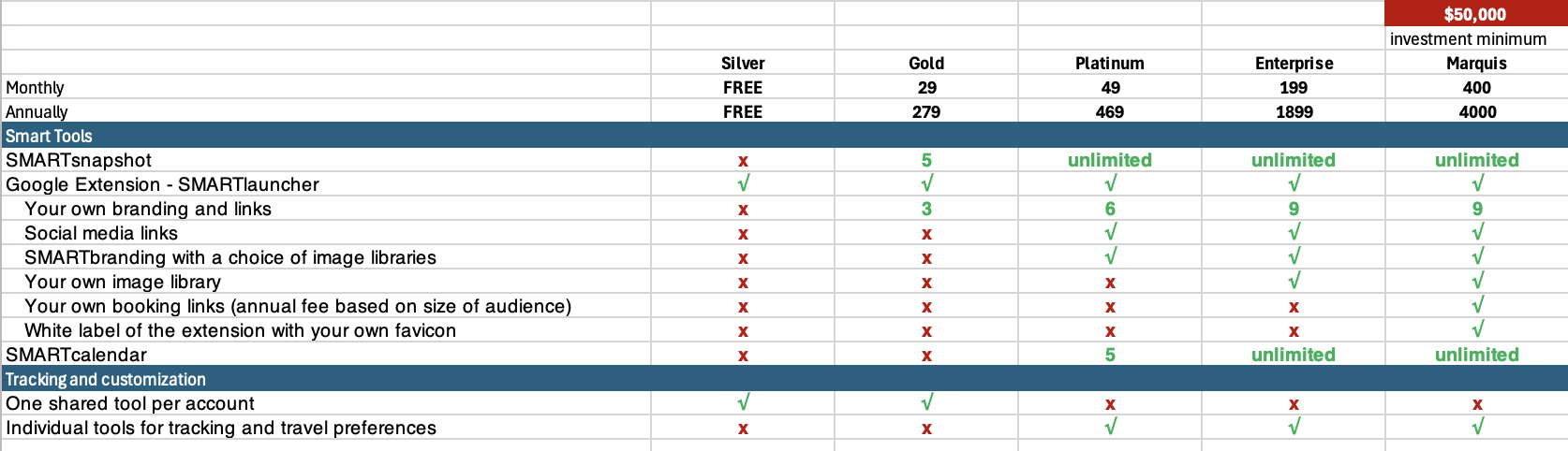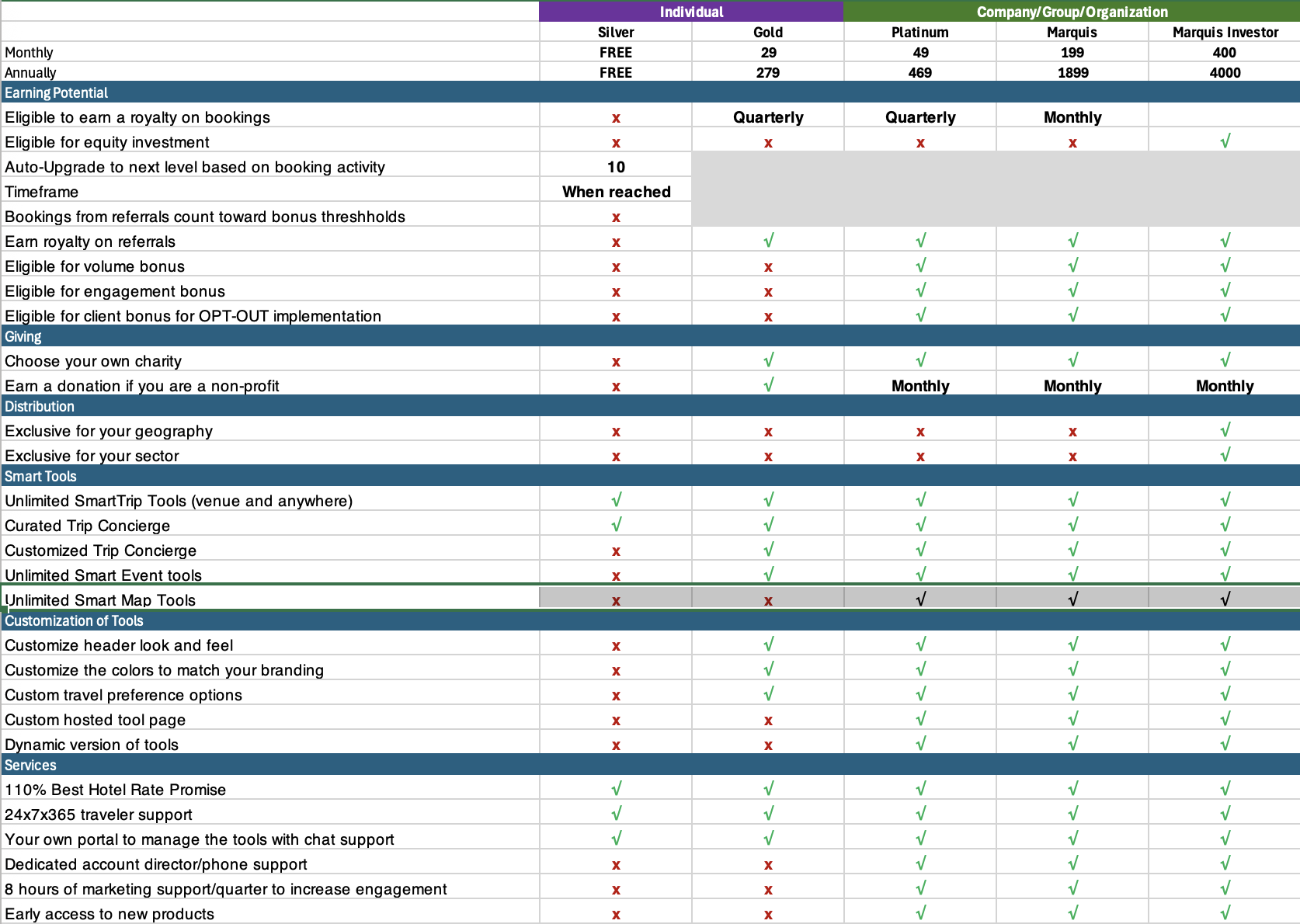 Yes, we have three levels. The first is Silver, which is free. There is a $29/mo fee for Gold, which if paid annually is $279/yr. Platinum is $49/mo or $469 annually. The Marquis partner level is $199/mo and $1899 annually, with a discount to $1499/year for a 2 year commitment.